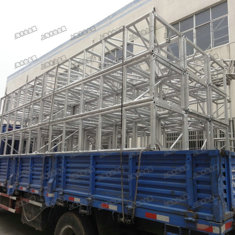 適合做舞臺架,燈光架,展棚架...中間不加立柱建議跨度22米。每根桁架平均可承重1200KG。
