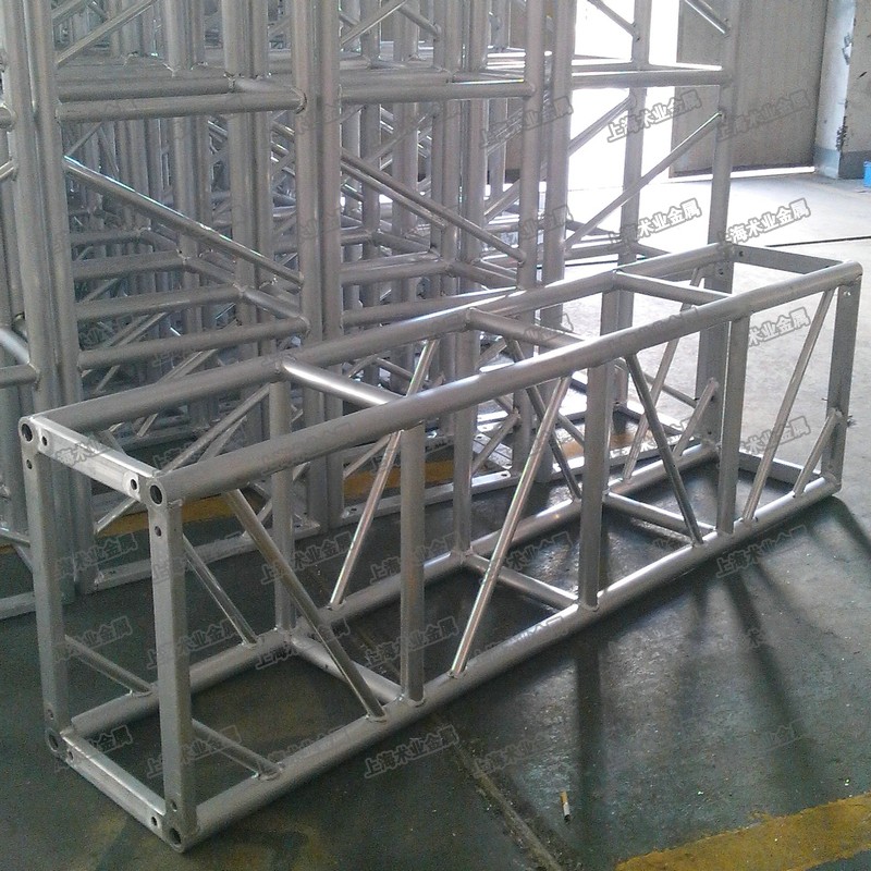 適合做舞臺(tái)架,燈光架,展棚架...中間不加立柱建議跨度18米。每根桁架平均可承重500KG。