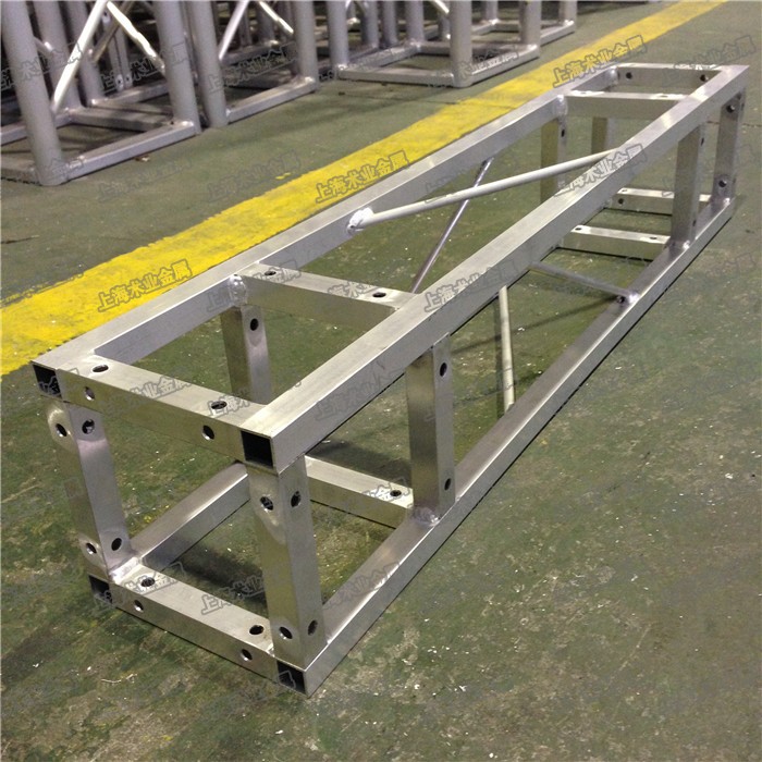 適合做廣告架和展覽架,輕型燈光架,中間不加立柱建議跨度8米(最大跨度我們做過12米的案例)。單根桁架平均可承重200KG。