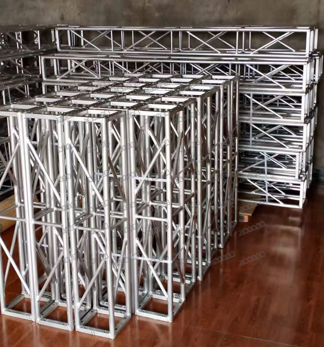 適合做廣告架和展覽架,輕型燈光架,中間不加立柱建議跨度8米(最大跨度我們做過12米的案例)。單根桁架平均可承重200KG。